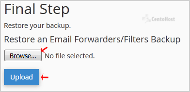 5. Click on "Browse", select your backup file from your PC, and click on the "Upload" button.
