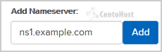 6. Navigate to "Add Nameserver" and enter our name server in the text field (for example ns1.example.com). Then click on the "Add" button. Repeat this to add our 2nd name server.